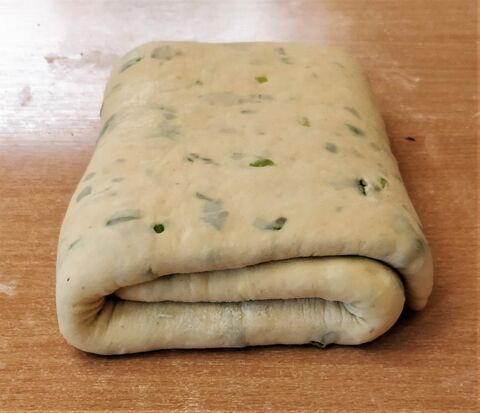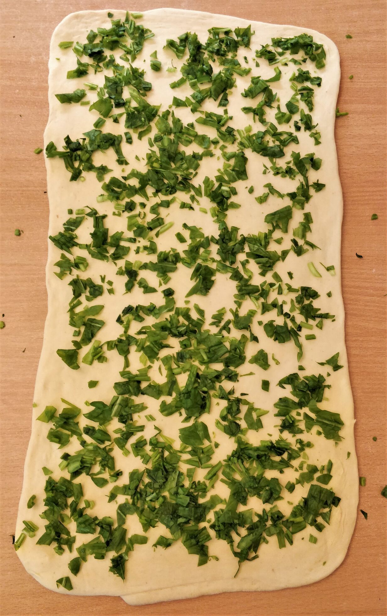 Miután ismét letelt az 1 óra kinyújtottam és megszórtam a felaprított medvehagymával: