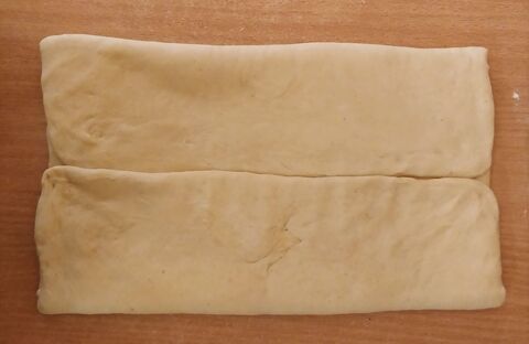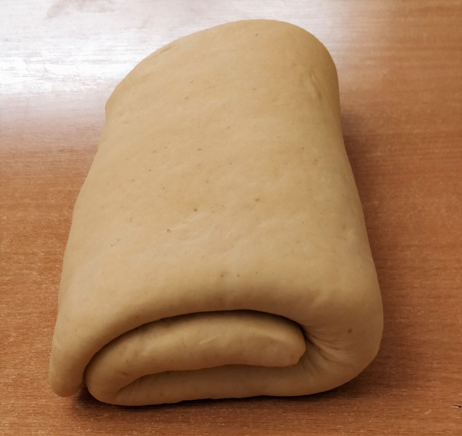 Ezt követően még 2szer nyújtottam és hajtogattam (az utolsó 2 alkalommal már csak 30 perc telt el a nyújtások között ):