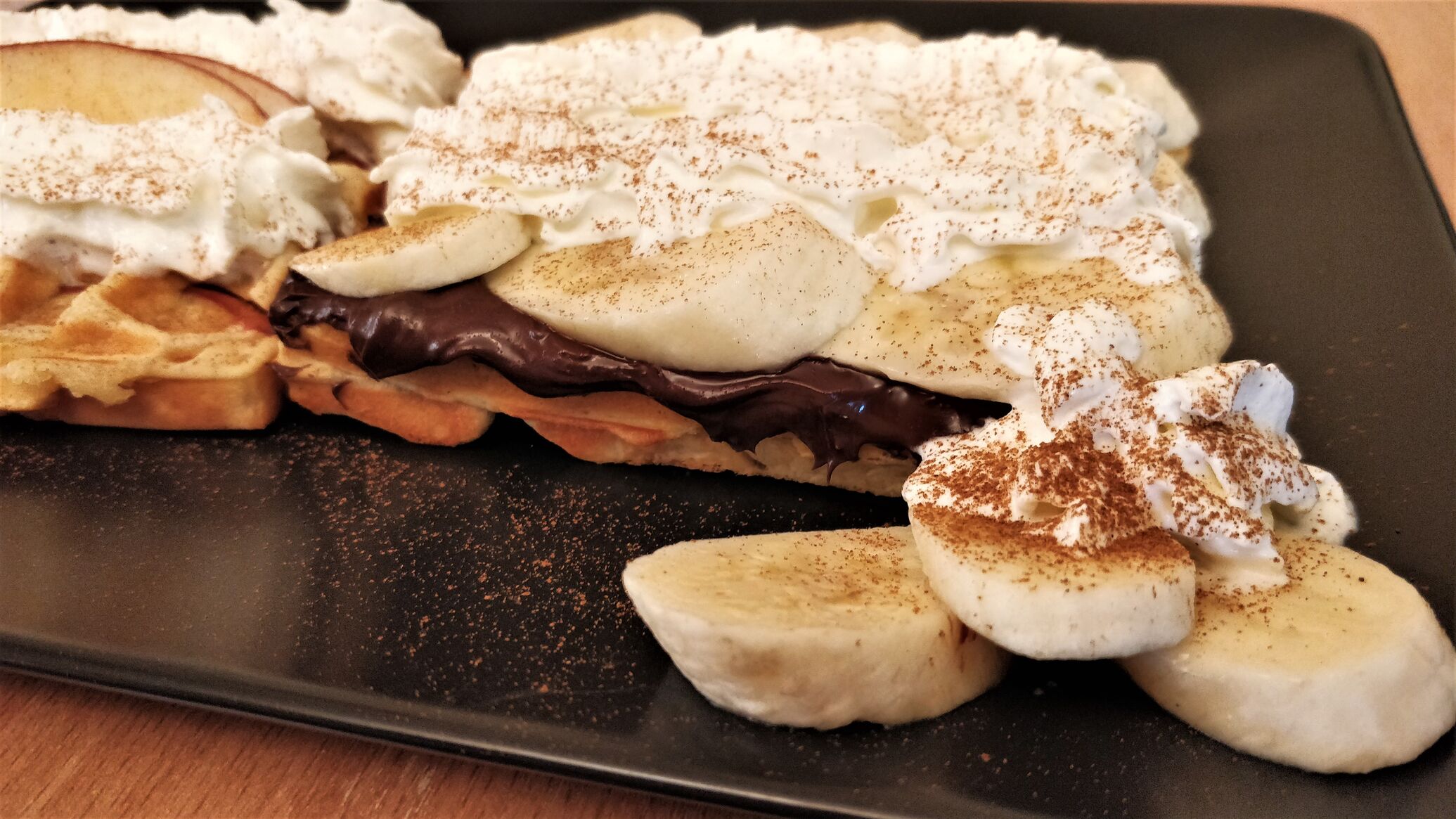Mogyorókrémes - banános - tejszínhabos gofri: