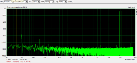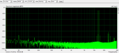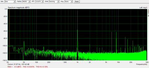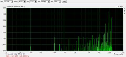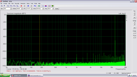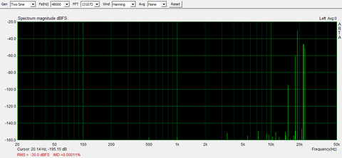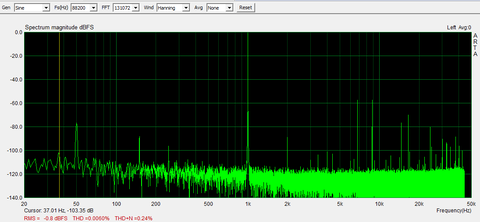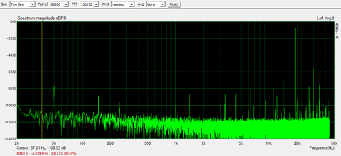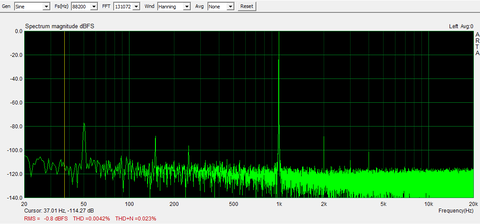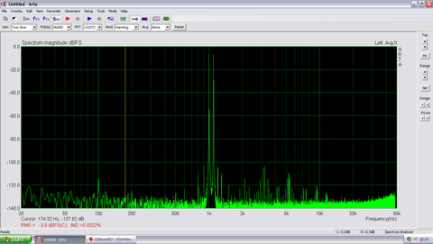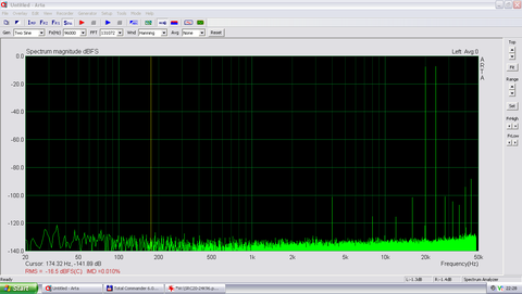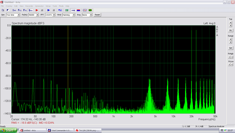 Úgy, hogy nem felharmónikus a jel az épp a jittert jelzi szerintem. Van ott gond bőven, csak másképpen jelentkezik ennyi küönbség volt nálam is a különböző verziók között, elég nagy a káosz 10KHz környékén. Ha megnézed a nagyobb frekvenciájú tüskék alig 40-50dB-re vannak a csúcstól, az nagyon sok, az már bőven hallható kategória.