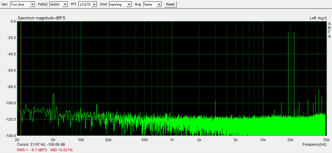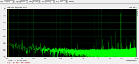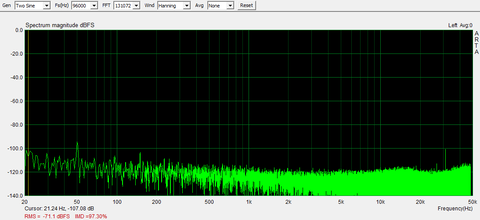 88Khz-nél hallható tartományú jelekkel is produkált -60dB-es tüskéket.