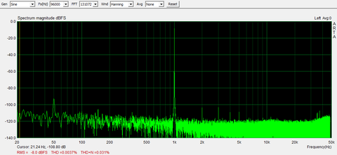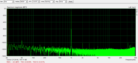Beállítottam az alaplapi SoundMax hangkártya ADC-jét 24bit 96kHz-re és mértem. A MomentDAC első verzióját mértem, amiben DIR9001 van az SRC4192 előtt (96kHz-re van állítva az SRC kimenete).