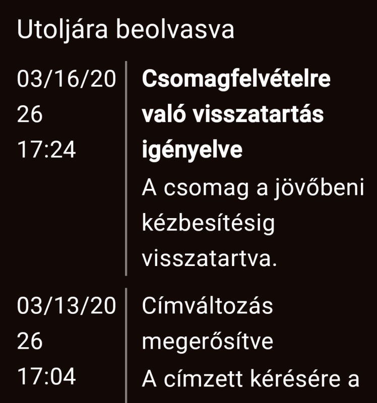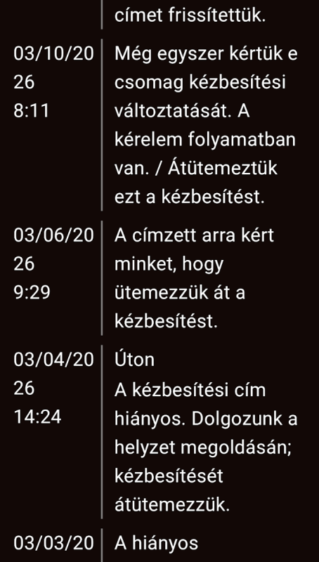 viszont a totálisan bfsz rendszerük miatt, már tudsz cimet módositani (már megtörtént 1x a sikertelen kézbesités), szóval még az opció, hogy ha tudsz, másik cimet adsz meg.