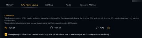 Amit tudok, hogy ki-be kapcsolható az iGPU (nyílván csak akkor működik ha nem a C porton megyek DP-ra külső monitoron, mert ez esetben ez a kapcsoló off by default)