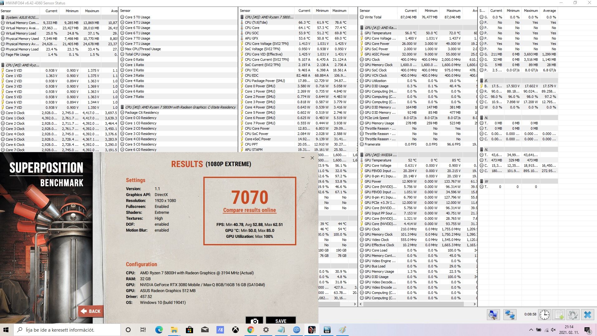 Magárol a gépről röviden annyit, hogy Fire Strike alatt 5800H veri a 10700K-t , a 130W-os 3080 pedig nem hozza a remélt hatalmas ugrást, viszont még úgy is csuklobol veri a 200W-os 2080 Super-t ami az x170-ben van. Tehát mondhatjuk hogy az Asus fogott egy X170-et, javította a hibáit majd azt beletomtek egy vékonyabb hazba. E mellett emeltek a teljesítményen és csökkentették a fogyasztást. X170-nel 2db 280W-os tápot kell húzni, g733Qs esetében csak 1db 240W-os van.