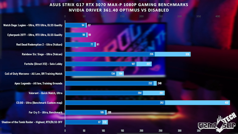 Szóval, hiába az erősebb hardver, néha nem tudtja elérni még a 2080 Super szintet se, sőt régebbi játékokban még a 2080 szintet se. Ennek 1 oka van: NVidia Optimus. Ennyit visszafog az Optimus régebbi játékokban.