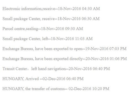 BJ trackes nagyon lassú,ez a mezei kínai posta. Ma futott be egy 11.16-án feladott csomag.