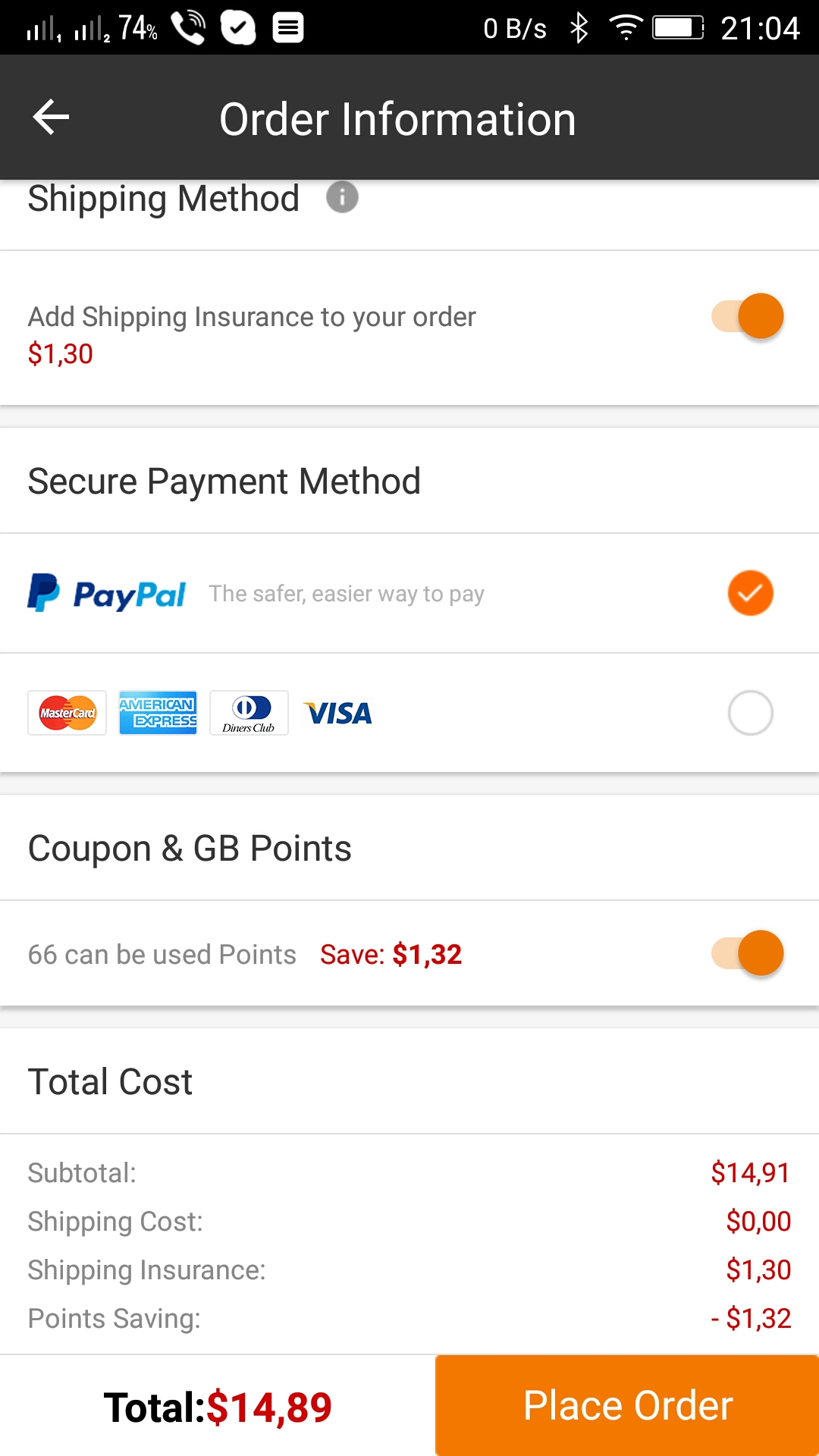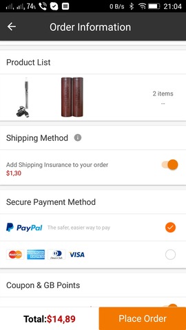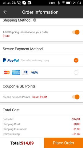 Most néztem, a PayPal módszerrel még mindig engedné. Itt viszont nem tudsz se GB wallet-ból fizetni, se pontokat felhasználni. Ha simán checkout-ra mész, akkor nem tudsz shipping method-ot választani az app-ban.
