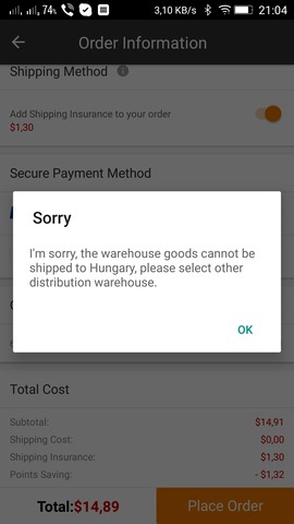 Ez gearbest hujeseg banggood siman kuldi. Gearbesten mas hujeseg is van bizonyos dolgokat egyszeruen nem szallit huba vagy eszement dragan, de valoszinu ez is az akku tartalom miatt van bizonyos akku nagysag felett. -