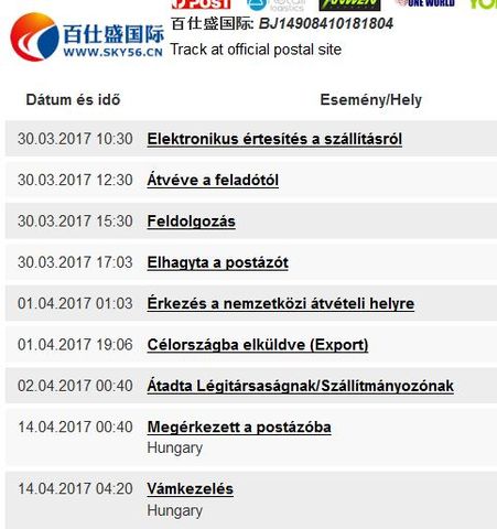 Tiédre is érvényes az amit írtam, egy dolog hogy a Track-it mit mutat, kaphat fals adatot. Főleg úgy hogy az ilyen küldemény azonosító a Magyar Posta rendszerében és a nemzetközi postai adatbázisban nem könyvelendő a postánk részéről. Ki írta volna be?