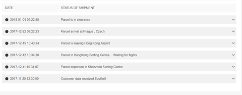 2017-12-20 14:14:06 Parcel arrival at Prague , Czech