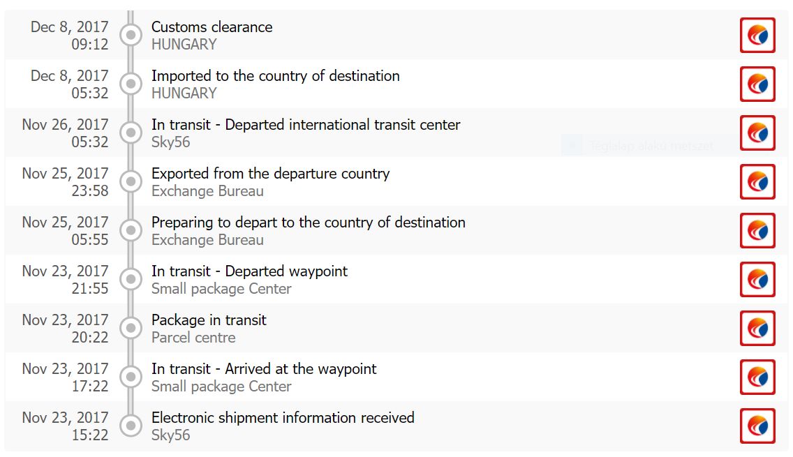 Ezt az utat járta be az eddigi 2 eu expressz rendelésem, mindkettő műszaki cucc: