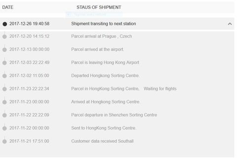 2017.12.04. csomag kézbesítve2017.12.16. rendelés leadása