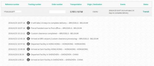 Ez mivel csak Belgiumig követett (ezt ilyen "zsákos" feladással oldják meg), hogy egy postai zsákba x db mennyiség belefér... azok kapnak "1db TN számot", ami a zsák tartalmában lévő "nem regisztrált küldeményeket" a tranzitországig követhető... (ilyen zsákos feladást az olcsó... nem vámolandó termékekkel tudják megtenni... gyorsabban feltudják adni, mert nincs "papírozás vele", hogy ajánlott - regisztrált legyen