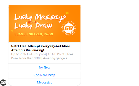 Profil és ott Go to Messenger, és van ott olyan hogy Daily Lucky Draw arra rányomni erre jön egy üzenet és ott Try Now, ekkor átdob a pörgetős oldalra ami mobil nézetbe jelenik meg, be kell jelentkezni és lehet pörgetni