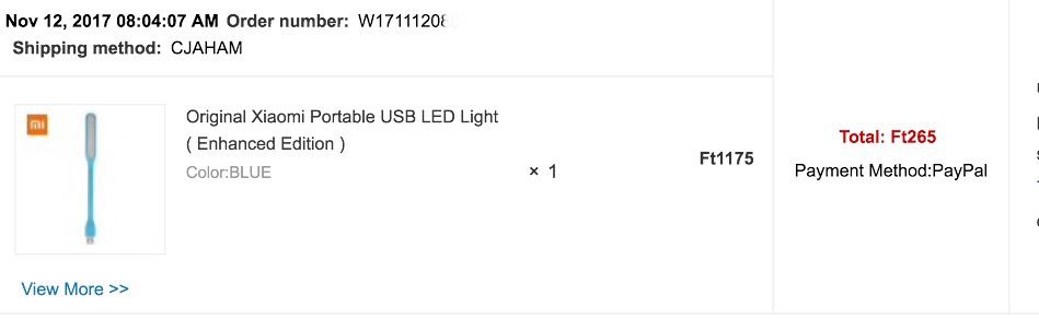 Ha ezt megnyitom akkor ott látszik hogy "Stock in: China"Tehát úgy tűnik mintha kínából lehetett volna ezt a terméket rendelni.