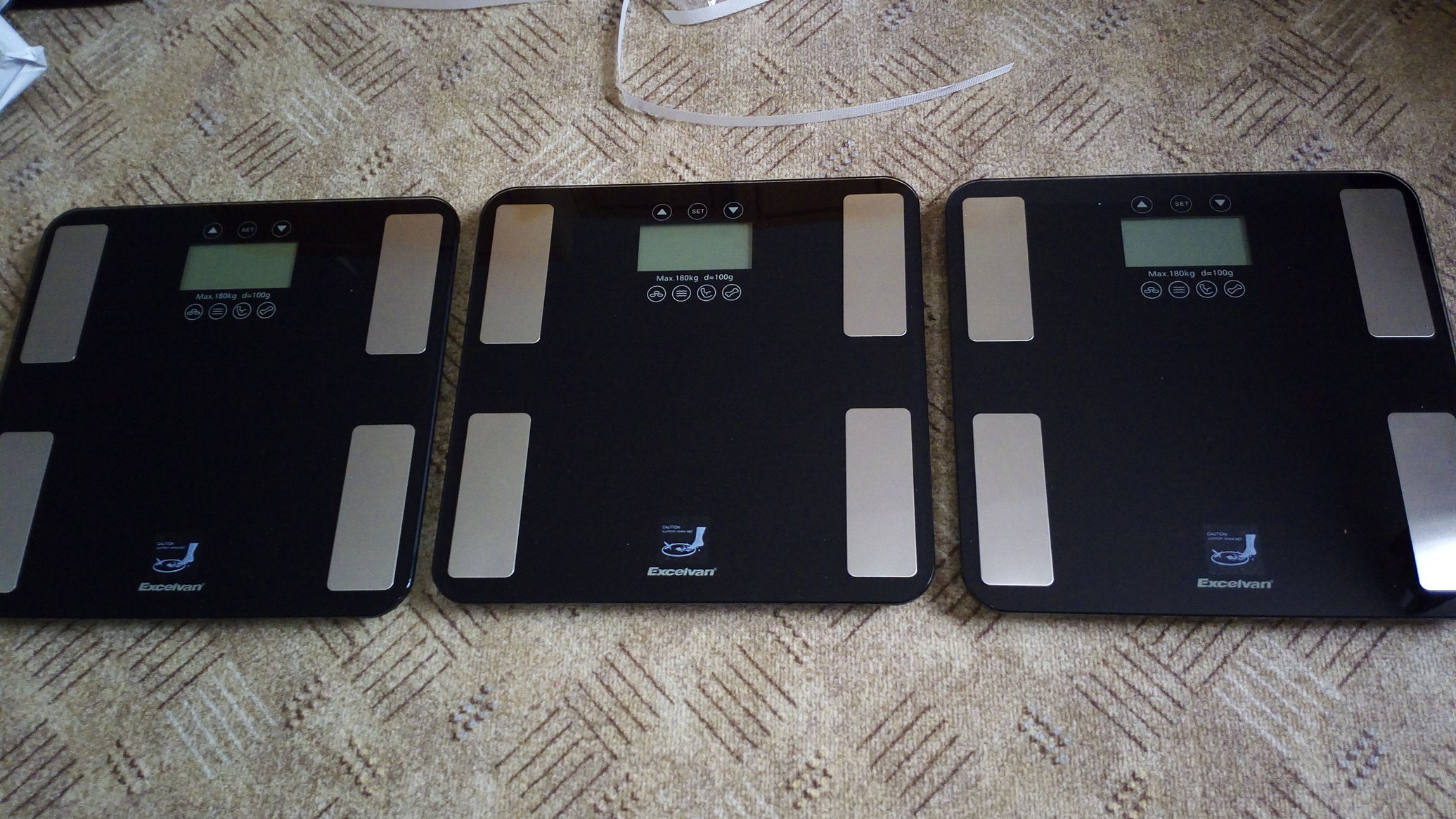 Mindhárom doboza külön fóliában volt, amyeleket egymásra tettek és körberagasztottak, aztán 2-2 szalaggal még összefogtak két irányból. Profi. ÉS mindegyik működik, szerencsére elég csak ráállni, bekapcsol, kiírja úgy csak a kilókat, majd nemsoká kikapcsol. Nem muszáj felkonfigurálni, hogy mindenféle mesét mondjon a testfelépítésről