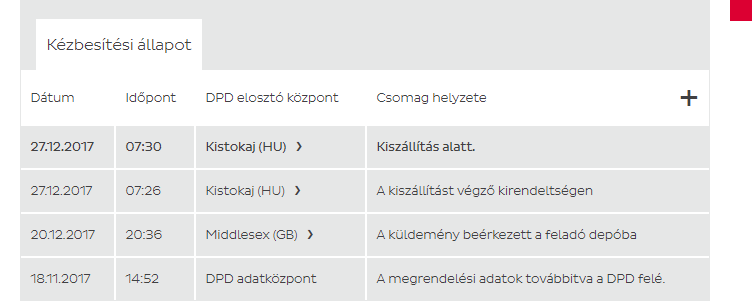 Ha már pesten van akkor az első munkanapon,tehát várhatod 27-én.A UK tracking oldalon csak kb- ra van irva.