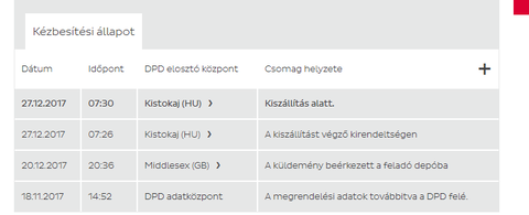 Az enyém is ugyanitt tart, és azt gondolom, szerdán szállítják vidékre, a kiszállítást végző kirendeltségre, majd csütörtökön kézbesítik.(Hacsak nem dolgoznak 25-26-án is, ugyanúgy, ahogy az előbb cidalain megetett többünket.