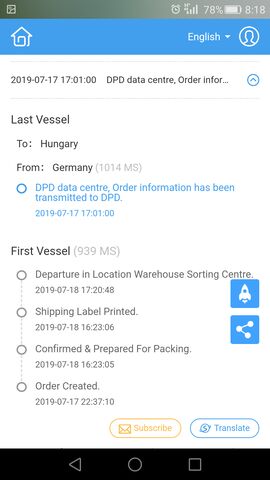 Kézbesítés folyamatban, a küldemény a futárhoz került.