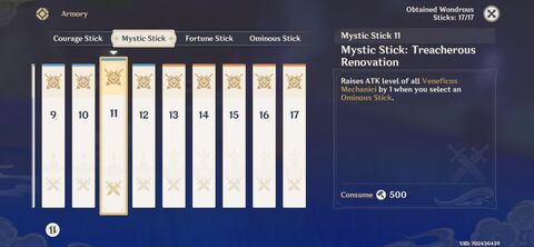 Van egy ugyanilyen kártya ami nem az ATK lvl-t hanem a Mastery lvl-t húzza ominous stickenként, az az elemental masterynek a buffolása ezerrel, az például a cryo + pyro kombóval tud iszonyatosan undorító lenni még