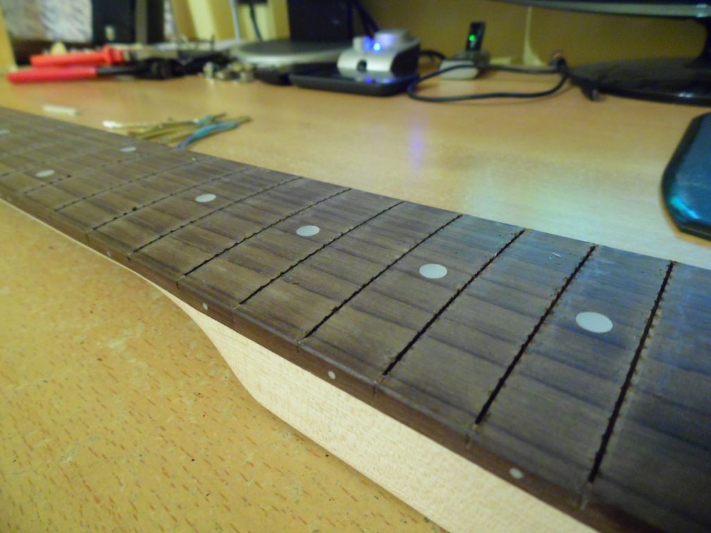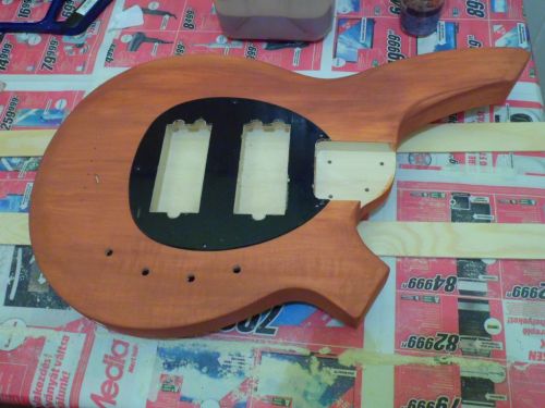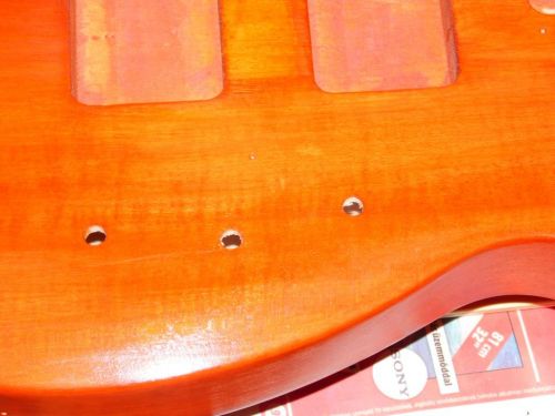A híd helye előre a ki fúrva, én úgy méricskéltem, hogy jó helyen van.Egyébként még lehet, hogy változtatok pl. az elektronikáján, most valami fura, basszer körben általam nem nagyon látott vol-vol-tone-tone 4 potis, passzív felállás van (azt mondják, ez kábé a gitáros "Les Paul" féle koncepció, csak kapcsoló nélkül?), nem tudom. Mondjuk láttam a GS-en ócsóér SD elektronikát, újonnan is az kerül a legkevesebbe... Némi marás-faragás, fedlap gyártás, és csókolom. Hmm...