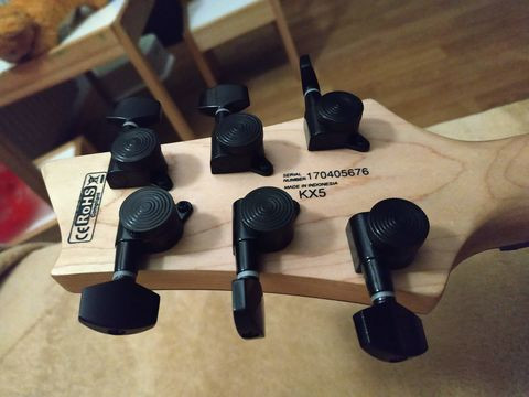 Közben felkerültek ezek a satus kulcsok a gitáromra, ha érdekel valakit, akkor ki tudja próbálni nálam. Annyi, hogy a 8-as húrkészlet vékony E húrját nem tudta megfogni a satu, ezért a hangszerész egy kicsit beletoldott, így már jó.