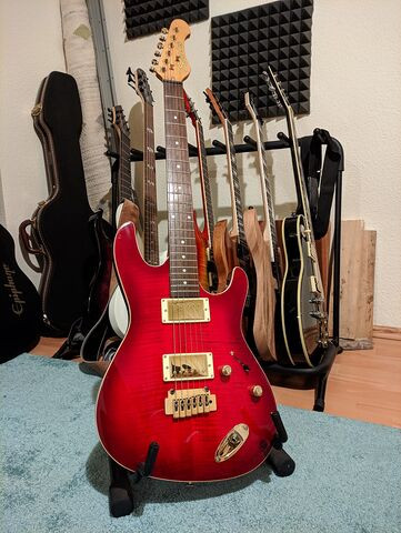 Nagyon disznó, 17/15k-s a két pickup, királyul szól.A Samickhez most érkeztek meg az arany pickupkupakok, megszenvedtem velük. Szűk volt az üreg, ki kellett tágítani. Utána zárlatos lett a bridge pickupon belül az egyik vezeték, megolvadt a szigetelése, amikor forrasztottam rá a kupakot. Persze csak azután jöttem rá, hogy már faszául összeraktam újra.