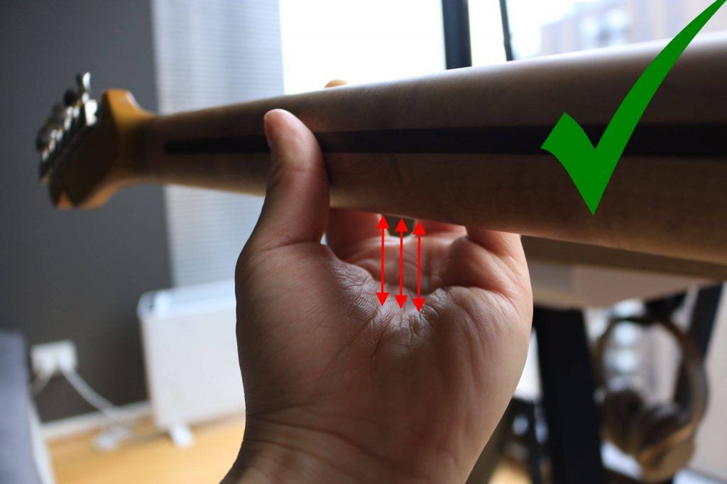 Meg az is, hogy éppen mit játszik. A sodrott húrokat például elég nehéz elérni ha adott szöget zár be a kéz a nyakkal, ellenben három magas húrnál már nem jelent problémát.
