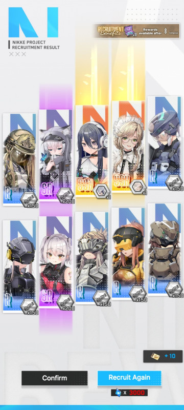 De normál blue ticket pullból kiesett Red Hood Rapi, Yuni (ő három csillagos lett), plusz még 5 másik SSR karakter, de azok Tetra és Missilis borzalmak.