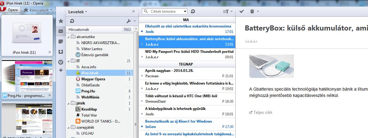 És szükségem lenne egy jó rss gyűjtő/olvasó-ra. De olyanra, ami meg is jeleníti az rss tartalmát, mint ahogy az Operás beépített. Tud valaki ilyet ajánlani? (mellékeltem róla képet - persze nem fontos, hogy pont ilyen legyen, a lényeg, hogy megnyissa az rss tartalmát és ne az egész oldalt egy külön fülön... több száz rss esetén elég gáz lenne úgy végigmenni rajtuk, hogy mindet megnyitogatom, bezárogatom, majd törlöm/olvasottnak jelölöm az rss olvasóban)