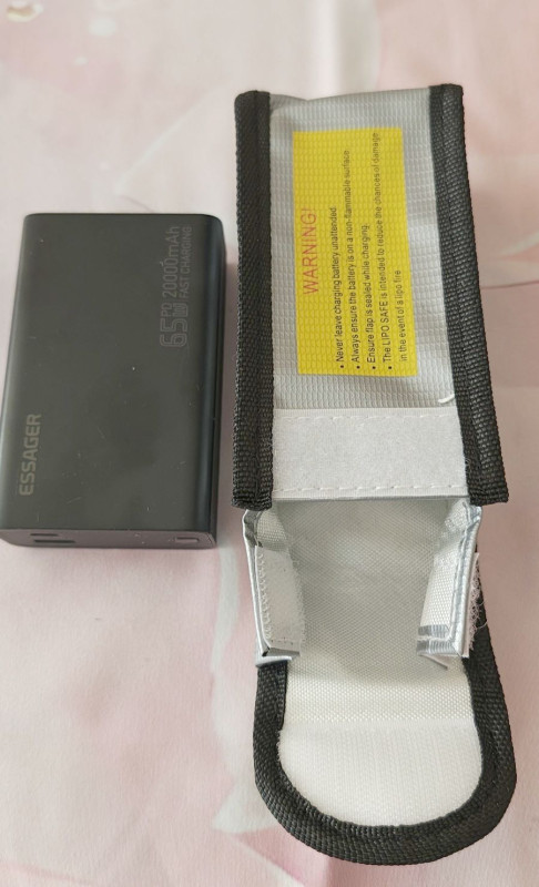 A safety bag egy tűzálló tasak, zsák, tartó... Ha beírod a gugliba: "battery safety bag", lesz pár találat.