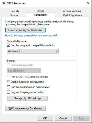 Az installalasi mappaban (...\Rockstar Games\Grand Theft Auto V\...) a GTA5.exe-t Windows 7 compatibility modra kell allitani, es be kell pipalni a 'disable fullscreen optimisations'-t.