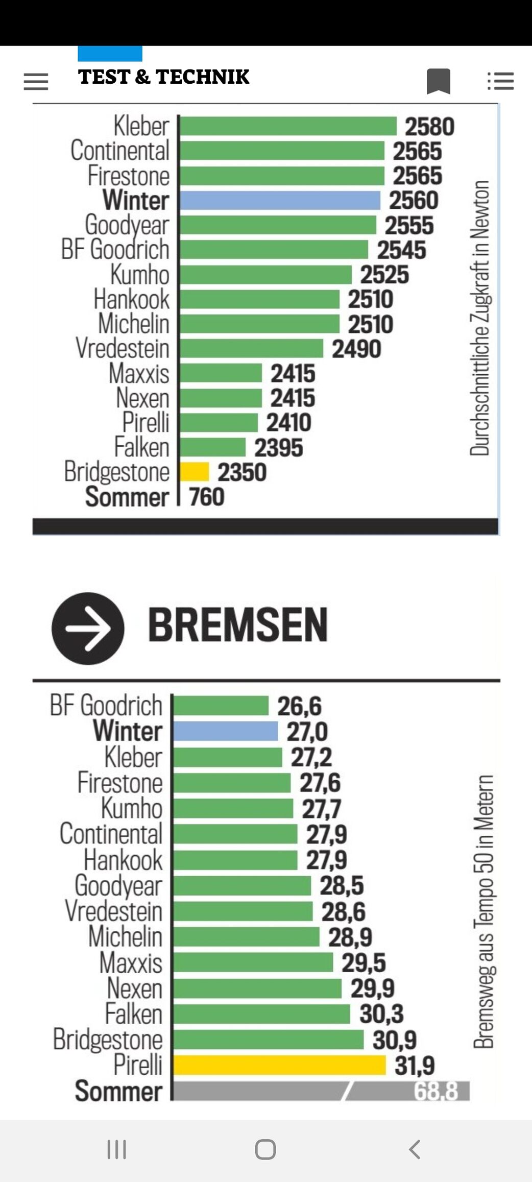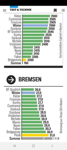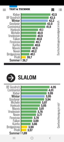 A fékút teszten azért meglepődtem néhány márka viszonylag gyenge teljesítményén. Pl a Kleberen, az Nokian-on és főleg az Apollon. Főleg, hogy ezek mind drágábbak lettek volna, mint a Nexen. Az új Quatrac jól szerepelt, a Hankook pedig meglepett, lenyomta az új GY-t. Továbbra is úgy látom, a Nexennel jól jártam. Árban és teljesítményben is.