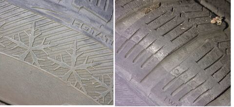 2014-es sütésű Michelin Alpin 5 - 2020. decemberben, 6 évesen már csak mintamélységet tud felmutatni, taknyos úton elforog. (A Michelin a kedvenc márkám. Azért eltettem a komplett, felnire szerelt szettet a pincében, még jó lehet valamire*.)