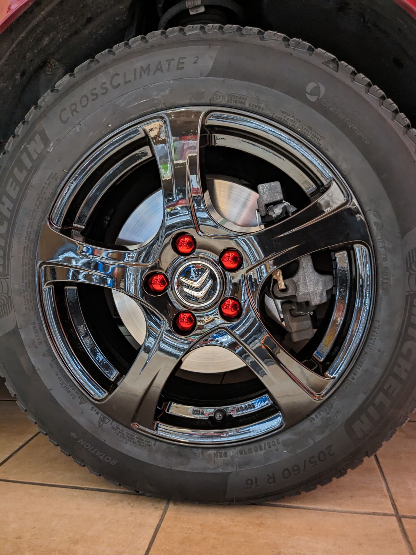 Gázul néznek ki a csavarok, plusz full fekete a felni (ezzel a kupakkal legalább pici króm van rajta) ami elég uncsi. Ezzel legalább van egy kis color matching