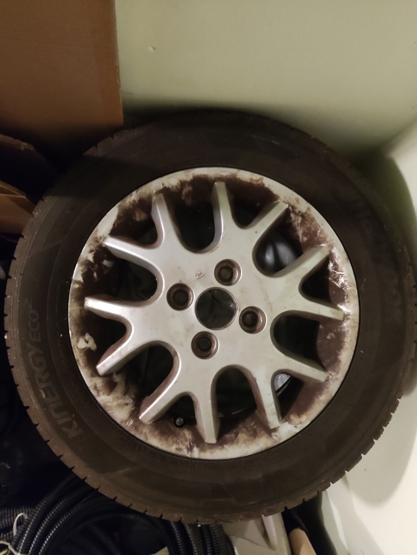 Segítenétek beárazni egy gumi-felni szettet? WagonR+ Sporthoz adtak ilyen gyári alufelnit, 4x100 R14, rajta egy szezont futott Hankook Kynergy Eco2 165/65 nyári gumi DOT1122. Maga a felni így néz ki. Felnikupak sajnos nincs meg mind.