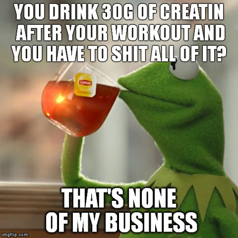 Én nem tudom, hogy honnan szeditek ezeket az eszement adagokat. Creatinból 30g mégis minek? 3*5g untig elég. Ha 100kg vagy akkor legyen 4*5g. Túl van amúgy is ez az egész creatin szedés meg "kúra" misztifikálva.