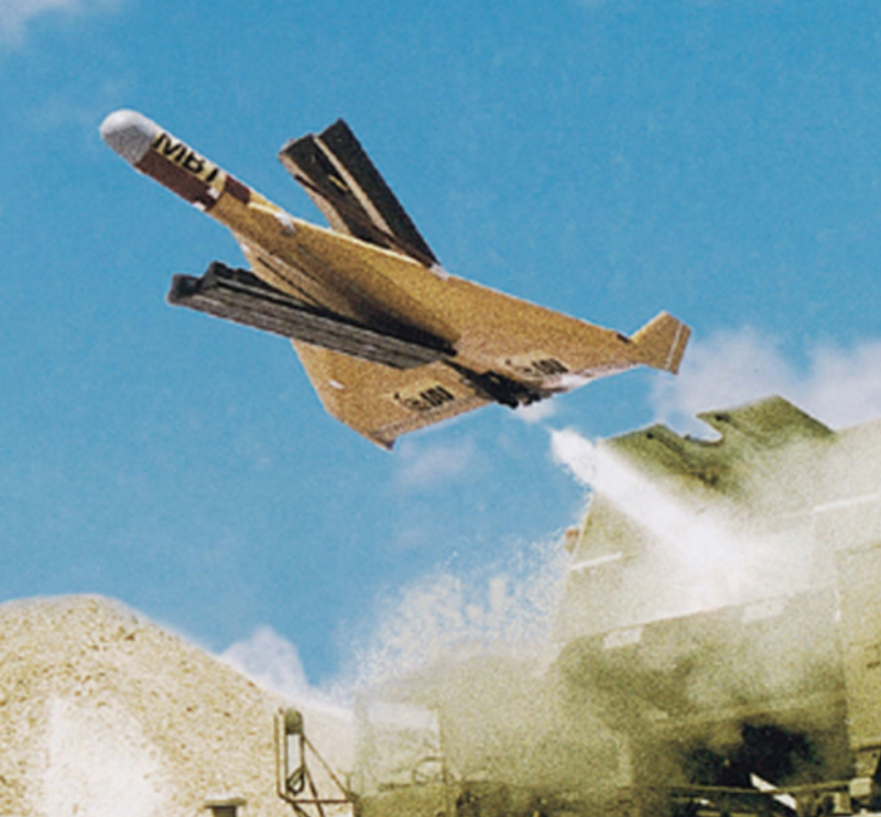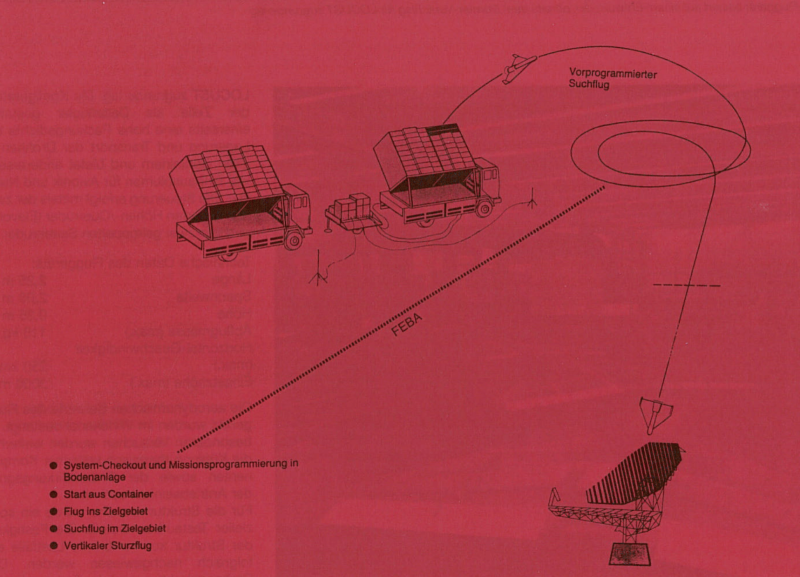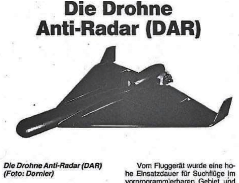 Valójában a forrás, az igazi ős a német Dornier DAR radar-elhárító "keringő" lövedék, amelyet az 1980-as években fejlesztettek és aztán megrendelés hiányában az 1990-es években el is felejtődött. A működés az lett volna, hogy egy előre beprogramozott célzónába keresett volna előre beállított radarjeleket, és ezekre vezette volna rá magát. A meghajtását egy kis kétütemű benzin-motor által hajtott toló-légcsavar biztosította.