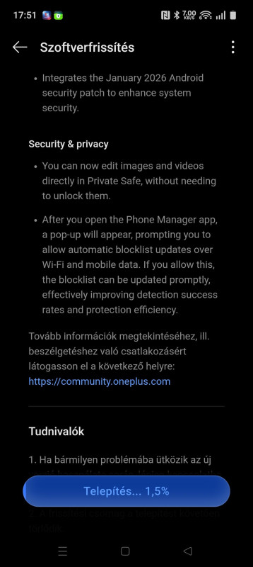 remélem majd javítják. Helyedben megpróbálkoznék egy onplus supporttal, vagy egy factory resettel, hátha