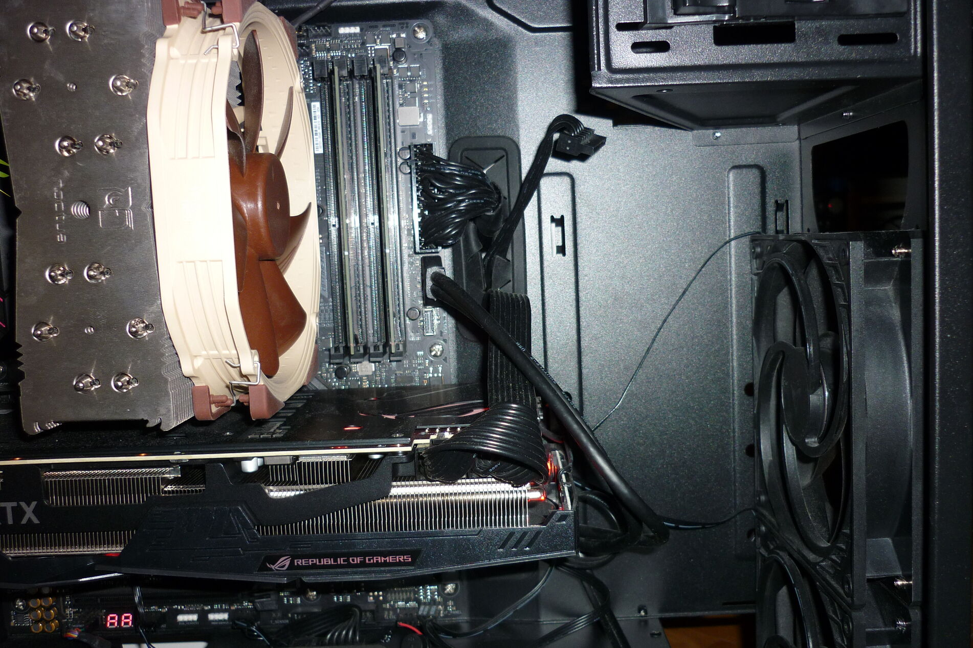 Nem szeretnék senkit megbántani, és kérem, ne is haragudjon meg senki, de úgy néz ki, hogy nekem nem válik be Arctic P14 PWM. Kettő van elől a képen látható módon, és búg(nak). Ha lefogom a kettő közül akármelyiket, akkor abbamarad a búgás. Lehet, hogy csapágy, vagy rezonancia, de akár az is, hogy kettő így egymás alatt/felett ilyen búgó szélzajt produkál, már 500 fordulat alatt is.