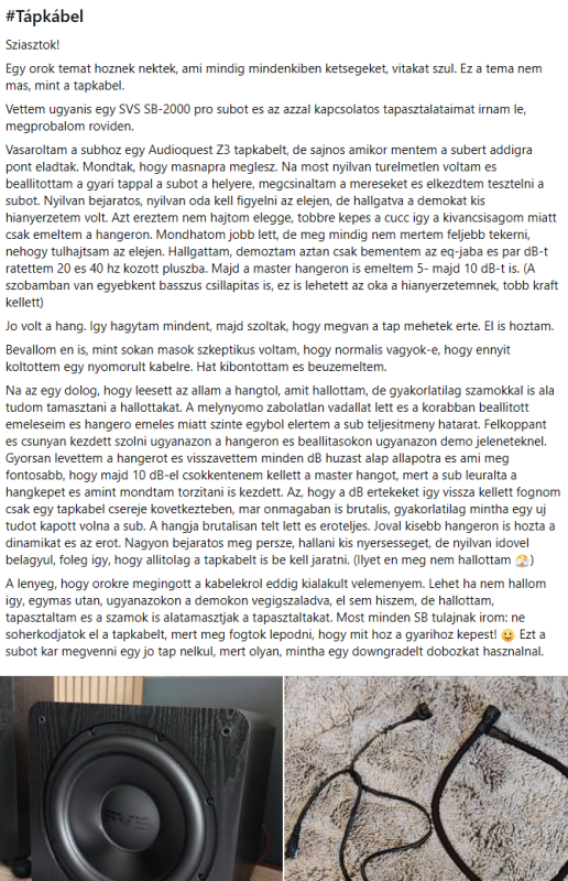 Fő vicc ez a +10dB ha jól értem több mint dupla érzékelt hangerő. A másik meg hogy a villany órától az utcán lévő kapcsoló szekrényig végig alu kábel megy.... E-on szerelő mondta nekem hogy főleg a súly és ár miatt használnak alu kábelt. Vastagabb kell mintha réz lenne, de gazdaságosabb. -