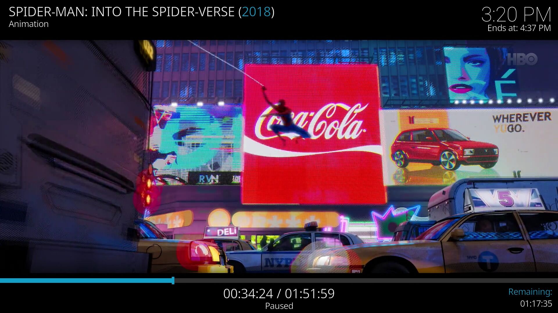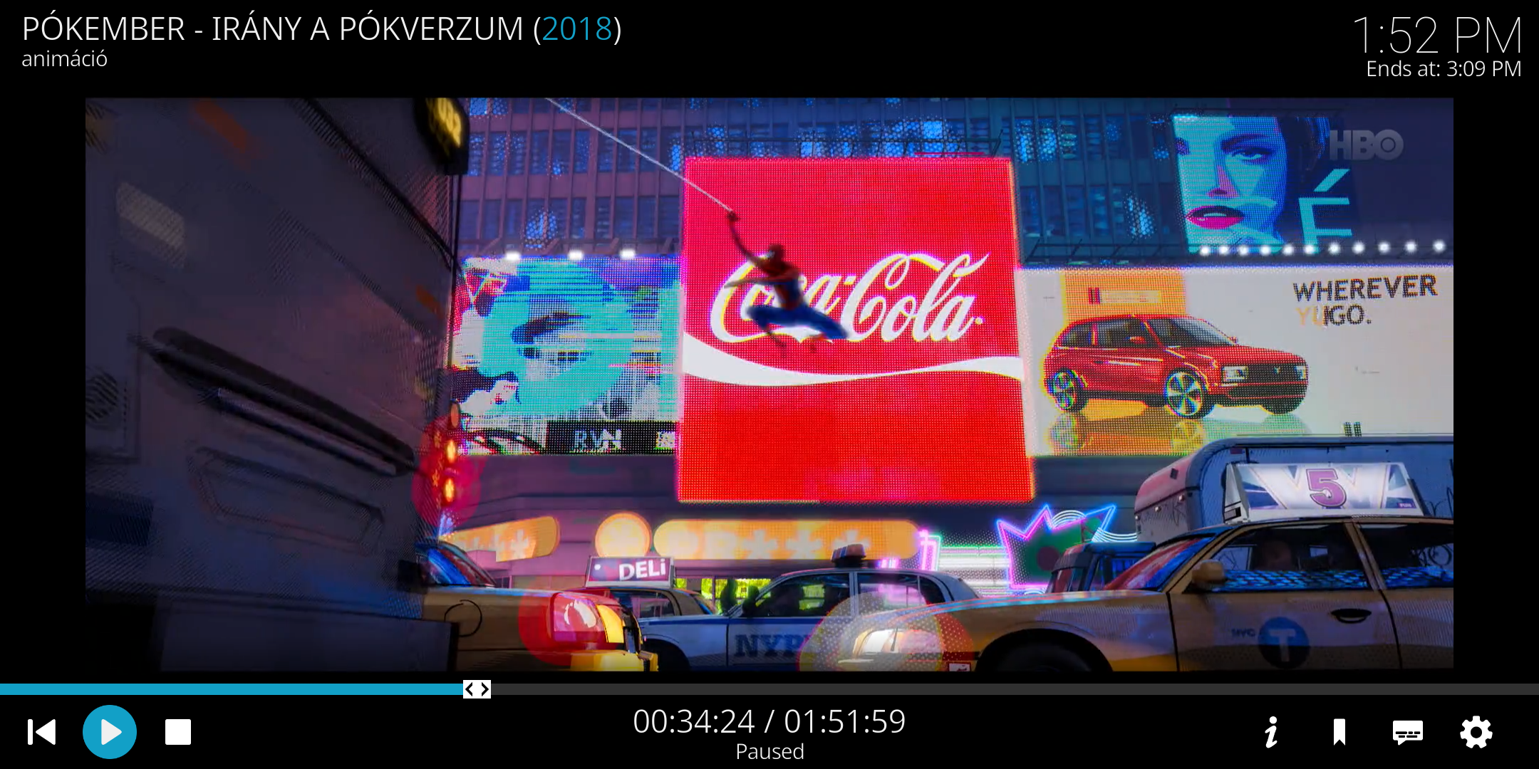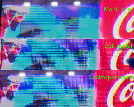 az appos screenshot az 576 soros minőség változattal egyezik meg. A 480 és kisebb esetén látványos sötét-világos interferencia effekt jelenik meg a coca cola reklámtáblán. 720-nál meg már kivehetők a reklámtáblákon a lámpa pixelek, ahogy fhd-ban is. Ja meg 720-on is interferenciás a cola tábla. Kodinál a videó minőségét lehet állítani menet közben, megállított képkockánál is.