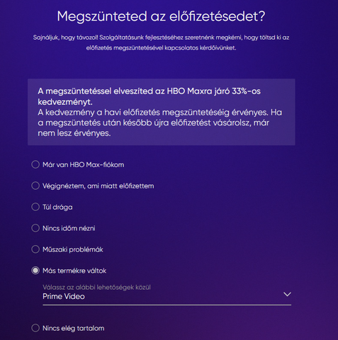 A Prime-nál meg minden adott: LG TV támogatás, Androidon FHD, Windows 10/11 Kliens FHD, és a katalógusban sem megy a ritkítás ilyen mértékben. Lehet nekem nagyok az igények, de az, hogy nincs PC-sek számára, vagy laptopot használók számára 1080p-s megoldás, akár böngészőben vagy applikációban, az nálam azt jelenti, hogy magasról le van egy réteg ... Aztán a nappaliban lévő TV-n sem megy, miközben a Prime meg igen. A kettőre együtt egyébként sem lenne időm. A Prime nekem elég. Akkor is maradok annál, ha felemelik az árát az HBO Max szintjére, mert nekem többet ad, jelenleg meg kevesebbet is kér, valamivel több mint a felét.