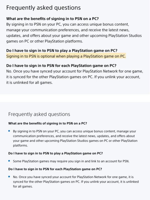 Eurogamer cikke szerint teljesen eltérő volt a játék megjelenésekor a PSN-re vonatkozó szabály: volt, ahol valóban leírták, hogy hamarosan szükség lehet rá, míg másutt csak mint egy opcionális lehetőségként hivatkoztak rá.