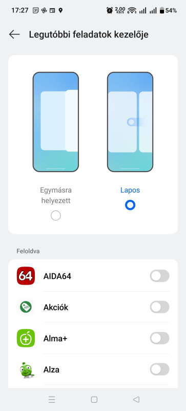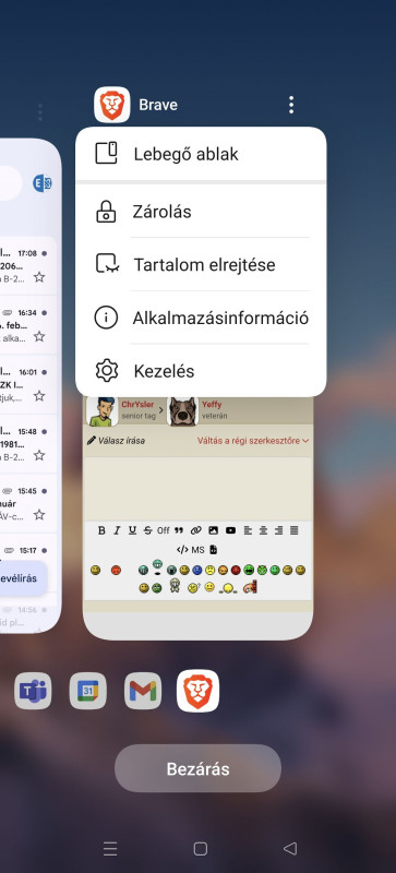 Viszont a masodik az nalam nem igy van. A Kezelesre (gondolom a Manage szot forditottak erre) nyomva nekem az applista jon fel, amiket lock-olhatok. Gondolom, h ne dobja ki a hatterben futo alkalmazasok kozul. Vagy van meg floating window, split view, lock. Egyik sem az, amit emlitesz.