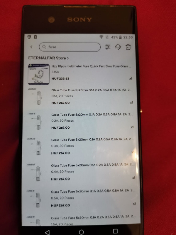 Üvegcsöves biztosíték alkatrészboltban 80Ft/db.