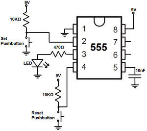 555 IC 4-es lába a Reset, amit + tápra kell kötni, hogy működjön, jelen esetben a vészjelzést adó astabil multivibrátor.