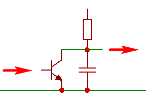 Amikor a jel lefelé fut, a kondi másik végének megfogásával elősegíti a kisülését. Utána a jel elindul felfelé, akkor azt a felfutó élet fogja hirtelen ráemelni a bázisra, miután a meredek impulzussal / élekkel szemben a kondenzátor minimális ellenállást képvisel.