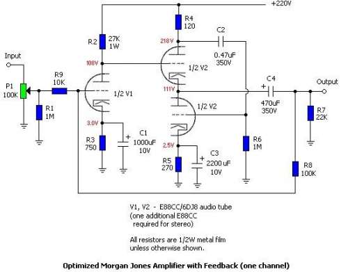 Az "optimalizált Morgan Jones" erősítőt csináltam meg, a visszacsatolás miatt erre kis impedanciás fejhallgatót is rá lehet kötni, nem csak 120ohm és fölötte, jól fog szólni 16-32 ohmon is.